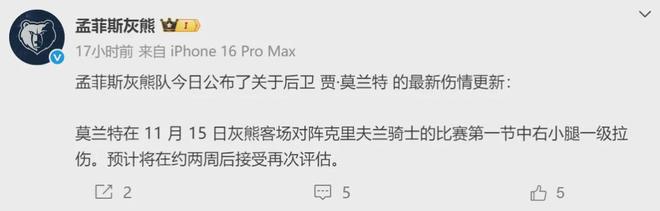 灰熊队官方宣布:“莫兰特右小腿一度拉伤,两周后将接受重新检查。”小牛品系分为不同程度。 1 级菌株通常持续 1 至 2 周,2 级菌株持续 4 至 6 周,3 级菌株持续 8 至 12 周。从这个角度来看,莫兰特损失的时间也在正常范围之内。不过,评论区的球迷认为,灰熊队的举动只是为了保护莫兰特,避免他在交易前受伤。莫兰特受伤是事实,与灰熊队打架也是事实。我们来一一说一下:11月16日灰熊对阵骑士的比赛中,莫兰特只打了六分钟,就因小腿酸痛提前离场。接下来我们就来说说莫兰特与灰熊队的纠纷。 11月1日,灰熊队输给了湖人队,莫兰特14投3中仅得到8分。灰熊队主教练伊萨洛质疑莫兰特的领导力和方法比赛结束后,莫兰特当场回应。 “如果你有任何疑问,请询问教练组。他们根本不想让我参加比赛,”莫兰特在接受采访时说道。 11月2日,灰熊队宣布莫兰特因扰乱球队秩序而被禁赛一场。考辛斯表示:“是时候离开了,灰熊队的停赛已经让我的立场明确了!”在停赛和受伤期间,莫兰特打了六场比赛,场均得到15分、3.7个篮板、8.5次助攻、5次失误,投篮命中率为30.3%,三分命中率为17.9%。莫兰特与主帅之间有何矛盾?即使莫兰特禁赛解除后,两人之间也没有任何交流。据NBA记者马克·J·斯皮尔斯报道,莫兰特和小贾伦·杰克逊本赛季并肩作战的时间不多。两名球员都对伊萨洛被替换的方式感到不满。但不同的是,3J并没有公开打斗。今年7月1日,自由市场开放后不久伊根,灰熊队用小贾伦·杰克逊交易了五年,最后一年有球员选项。合同续签金额为 2.4 亿美元。结果口头约定第二天3J跑去接他时受伤了。灰熊队并没有以此为借口降低价格,仍然给了他一份高达2.4亿美元的合同。灰熊队对他很感兴趣。即使3J不满意,也不会给团队带来什么大惊小怪。莫兰特没有这个待遇。莫兰特有资格在今年休赛期提前签下一份为期两年、价值1.284亿美元的续约合同,但灰熊队没有与他续约。莫兰特表面上对他的教练老板不满意,但实际上他对续约问题感到愤怒。本赛季莫兰特场均出战28.8分钟,得到17.9分3.5篮板7.6助攻1抢断和3.8失误。他的三分球命中率分别为35.9%、16.7%和94.2%。他的场均得分是职业生涯第二低,仅比他的新秀赛季还要高。他的场均篮板数、投篮命中率和三分命中率均为职业生涯最低。他的场均失误数是职业生涯最高的!莫兰特目前的合同价值5年1.93亿美元,将于2028年夏天到期。他们会把莫兰特送到哪支球队呢?他最初与火箭队联系在一起。随着谢泼德越来越好,火箭不想再做任何大的阵容调整。目前森林狼队和热火队都对莫兰特感兴趣。您认为适合什么团队?
